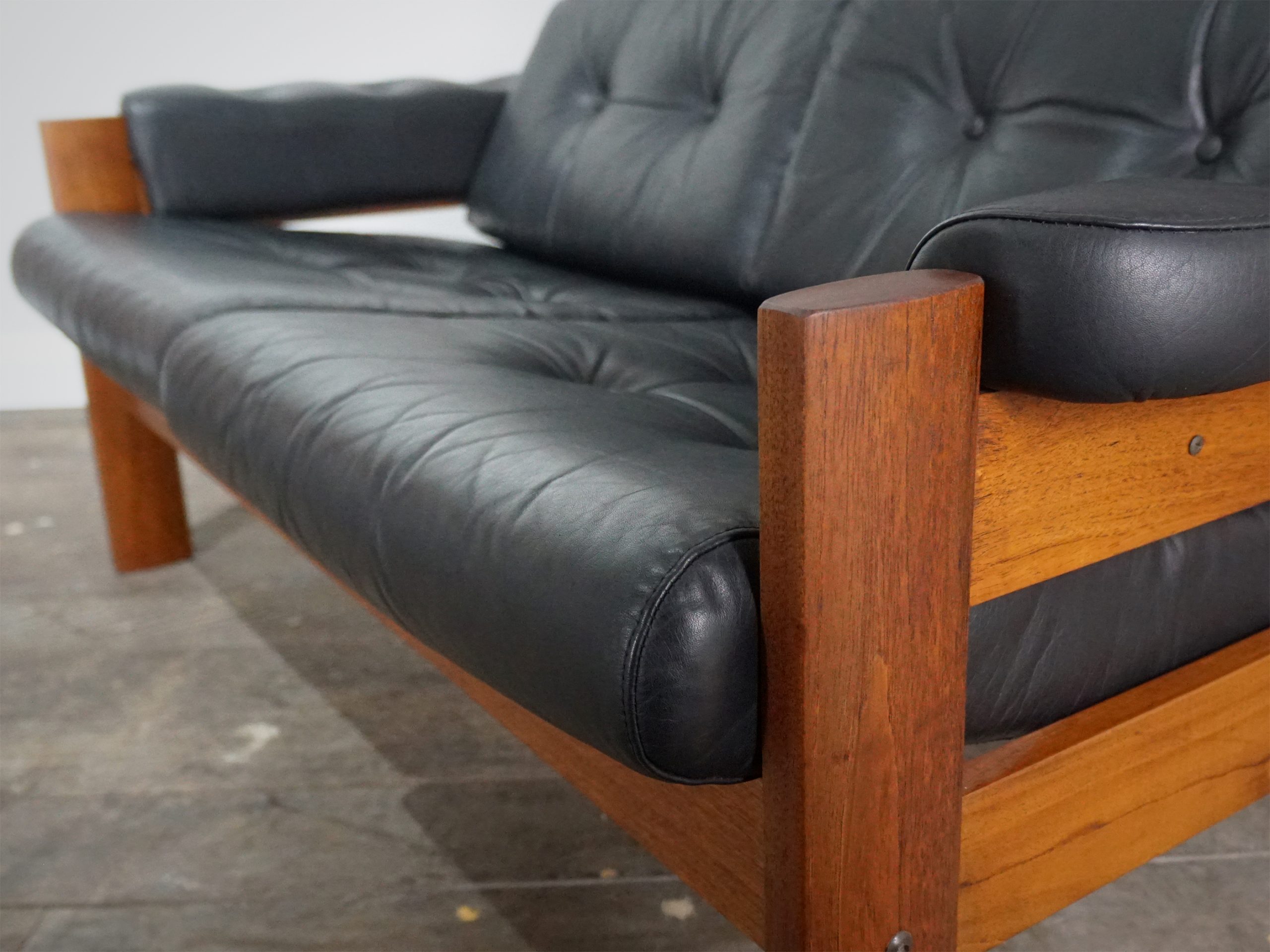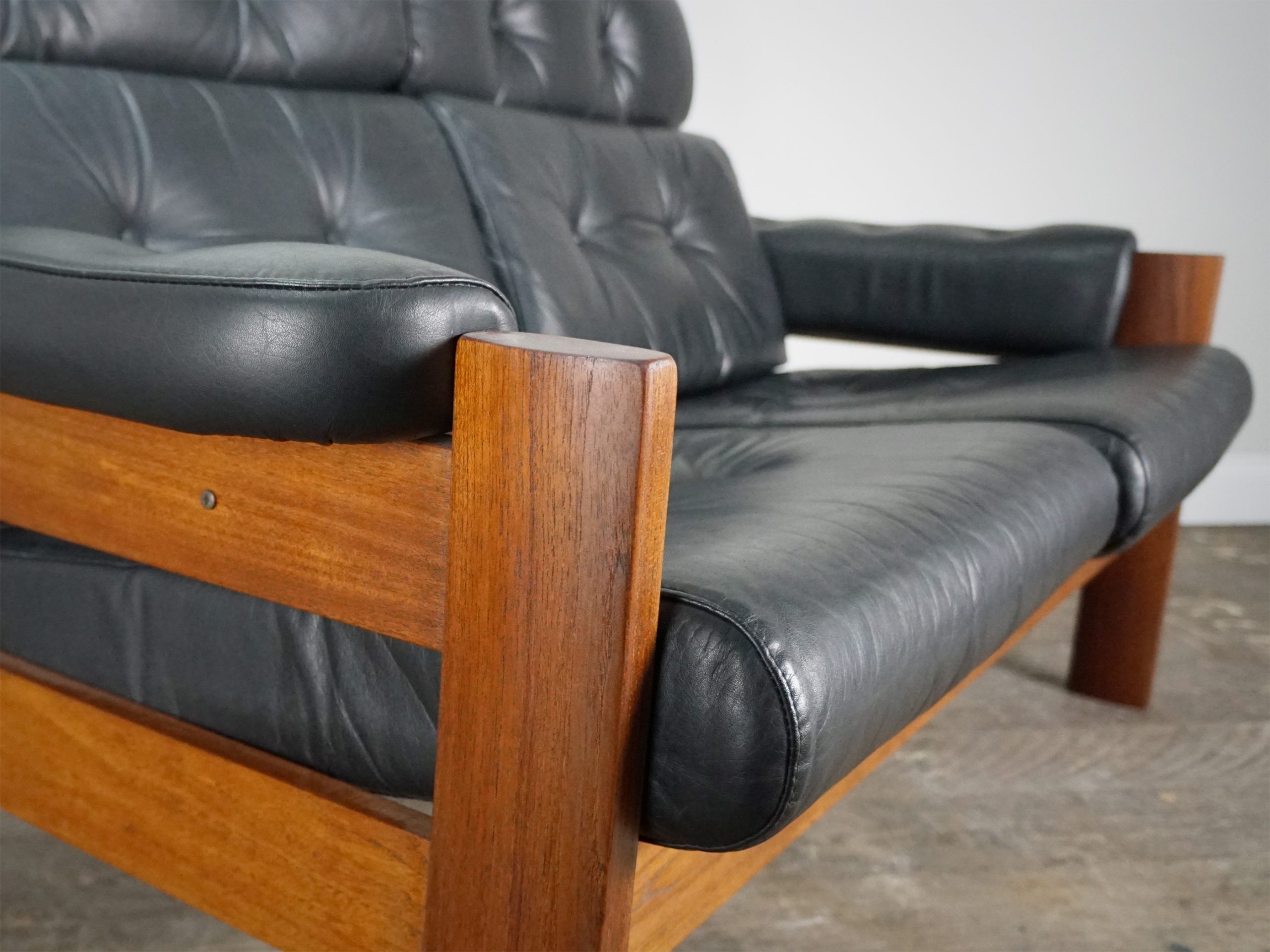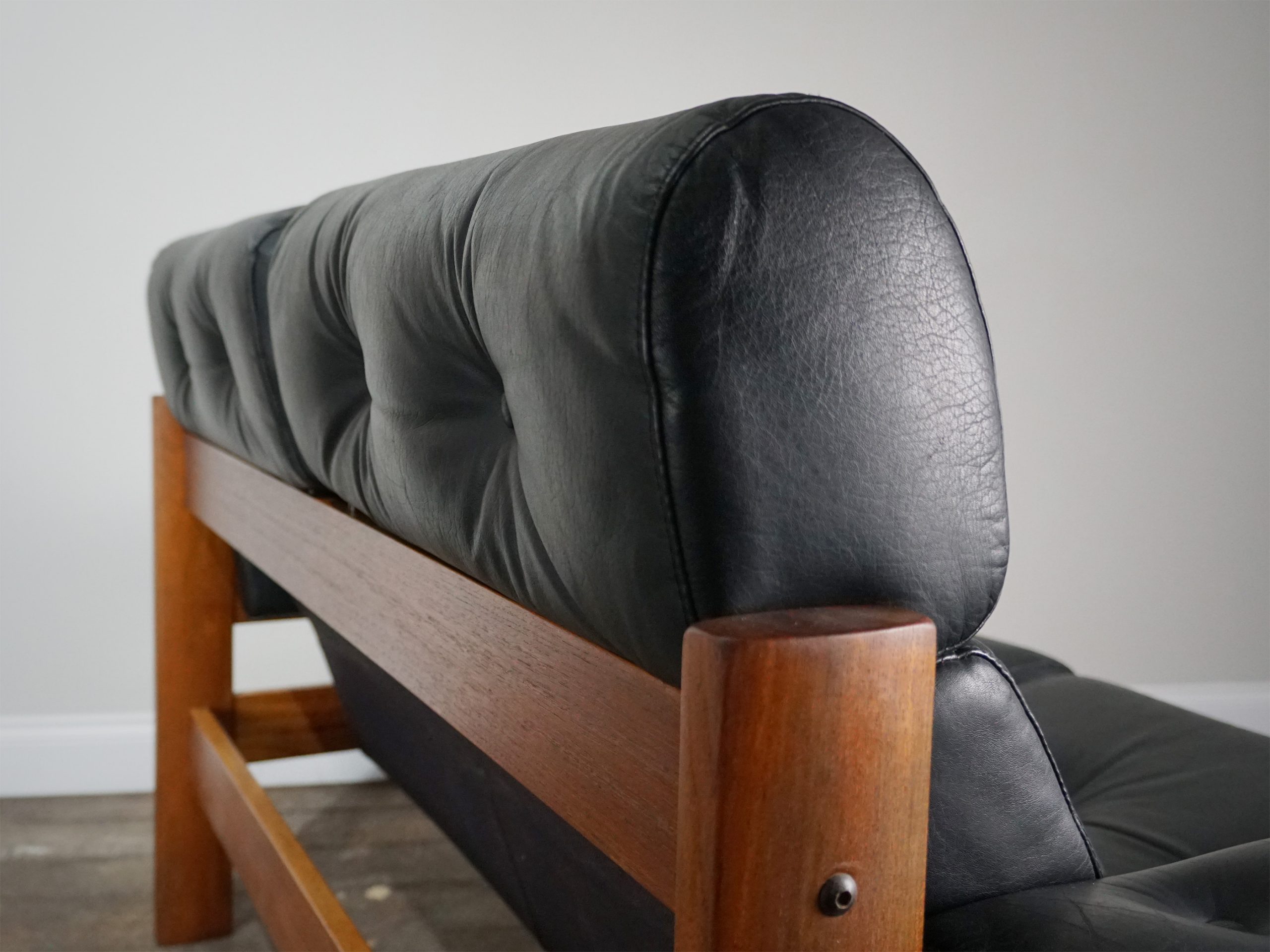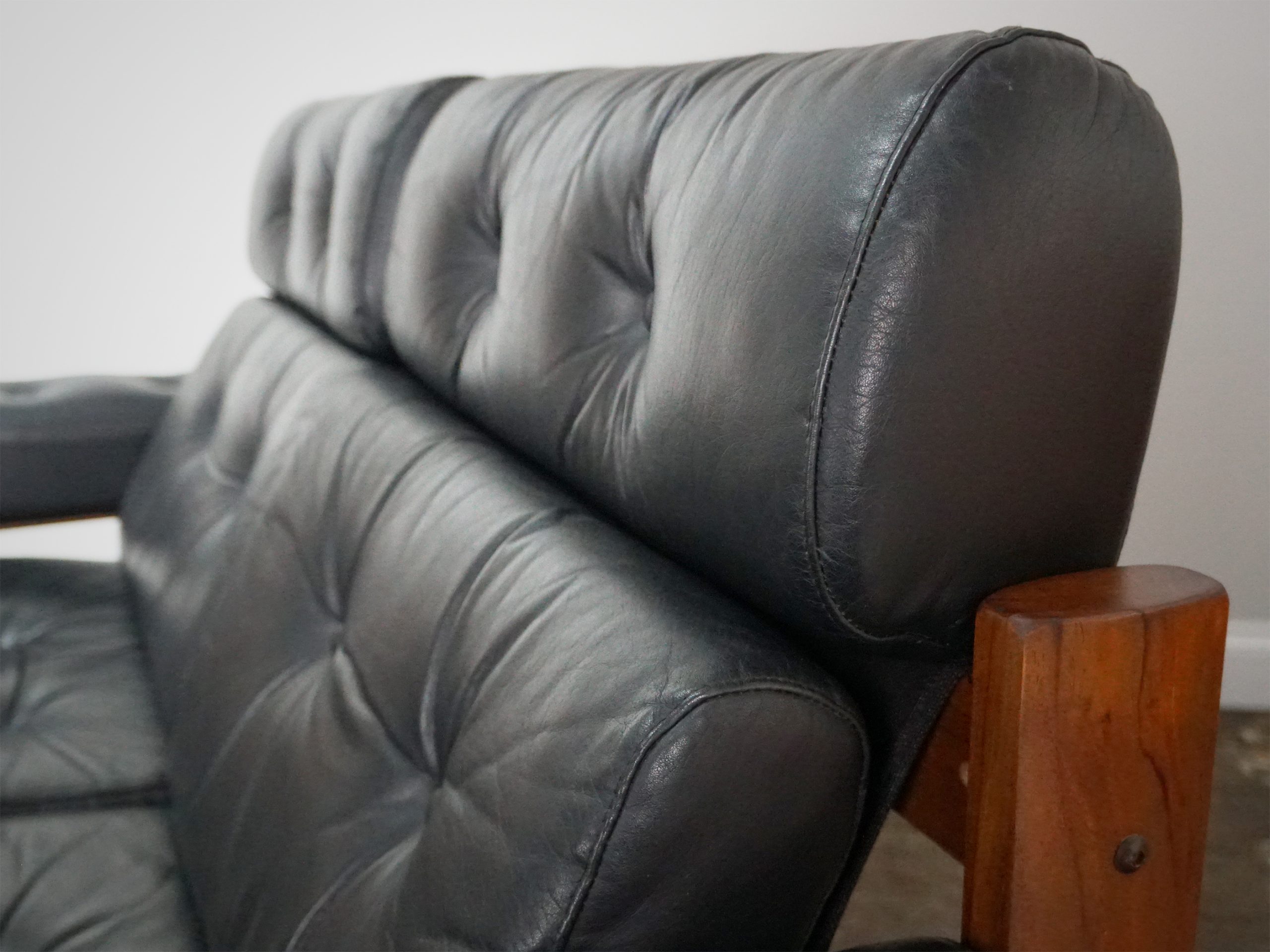 There are some minor signs of wear that you would expect from a piece of furniture that is 50 years old, but there are no rips or stains to the leather and the teak has only very minor marks. Both the leather and teak have been revived whilst retaining the stylish patina of an aged piece.