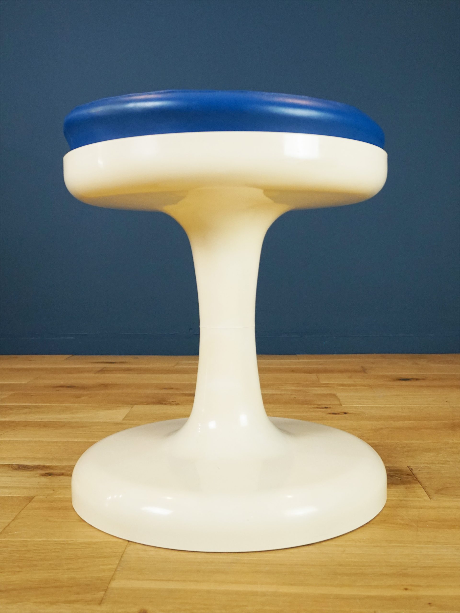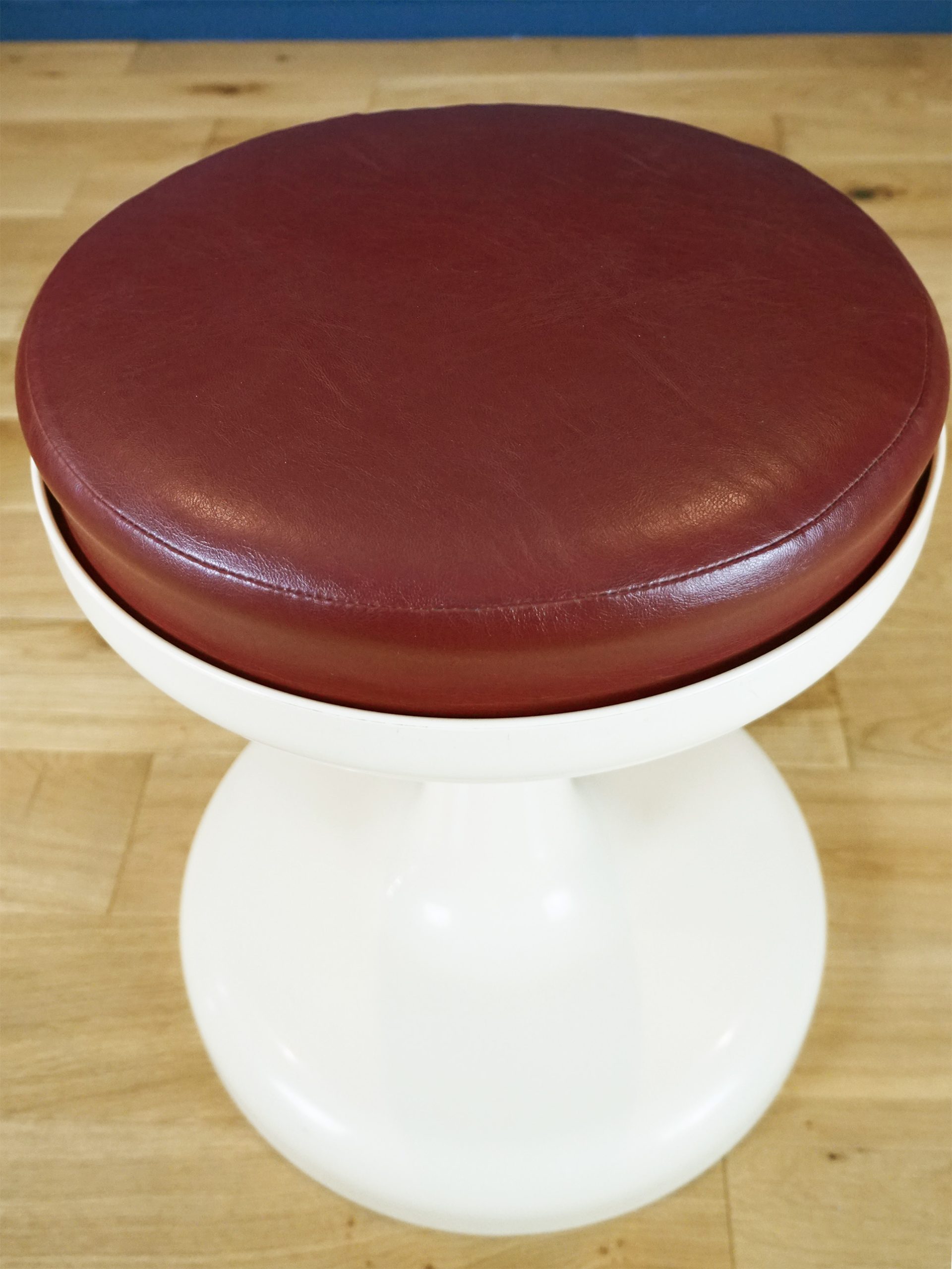 Both stools remain in excellent vintage condition. The plastic has mellowed to a soft ivory tone, a natural characteristic of age, while the original vinyl seats are remarkably well preserved. Perfect as extra seating or accent pieces, these stools bring playful Pop Art style and authentic mid-century character into any interior.